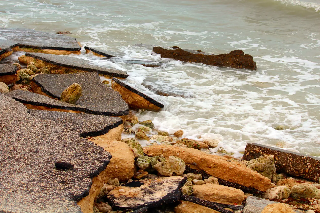 Subsurface erosion occurs when water, particularly during high tides, storms, or heavy rain, infiltrates the soil behind the seawall. This water flows back out through cracks, joints, or weep holes, carrying small particles of soil with it. Over time, this process—known as "scouring" or "piping"—creates large, hidden voids and cavities behind and beneath the seawall.